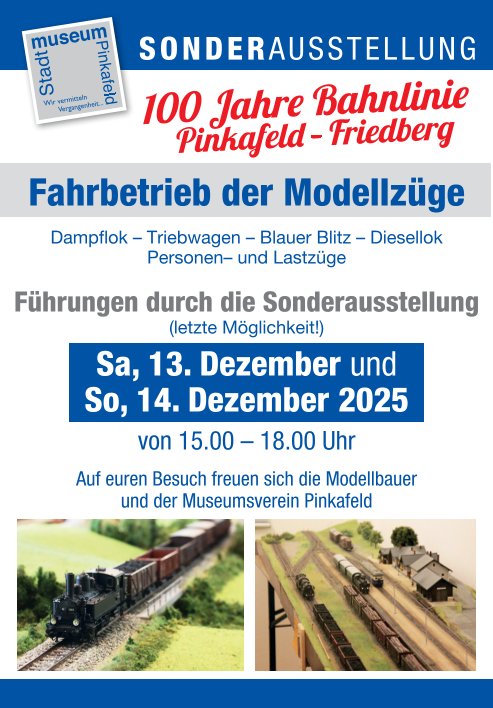 Der Museumsverein Pinkafeld bedankt sich bei allen Besucherinnen und Besuchern, bei den Mitwirkenden der Eröffnungsfeier, ganz speziell aber bei allen, diese Sonderausstellung möglich gemacht haben. Ein spezieller Hingucker sind natürlich die Modelle der alten Bahnhöfe unserer Umgebung, die sicherlich noch viele Museumsbesucher begeistern werden.